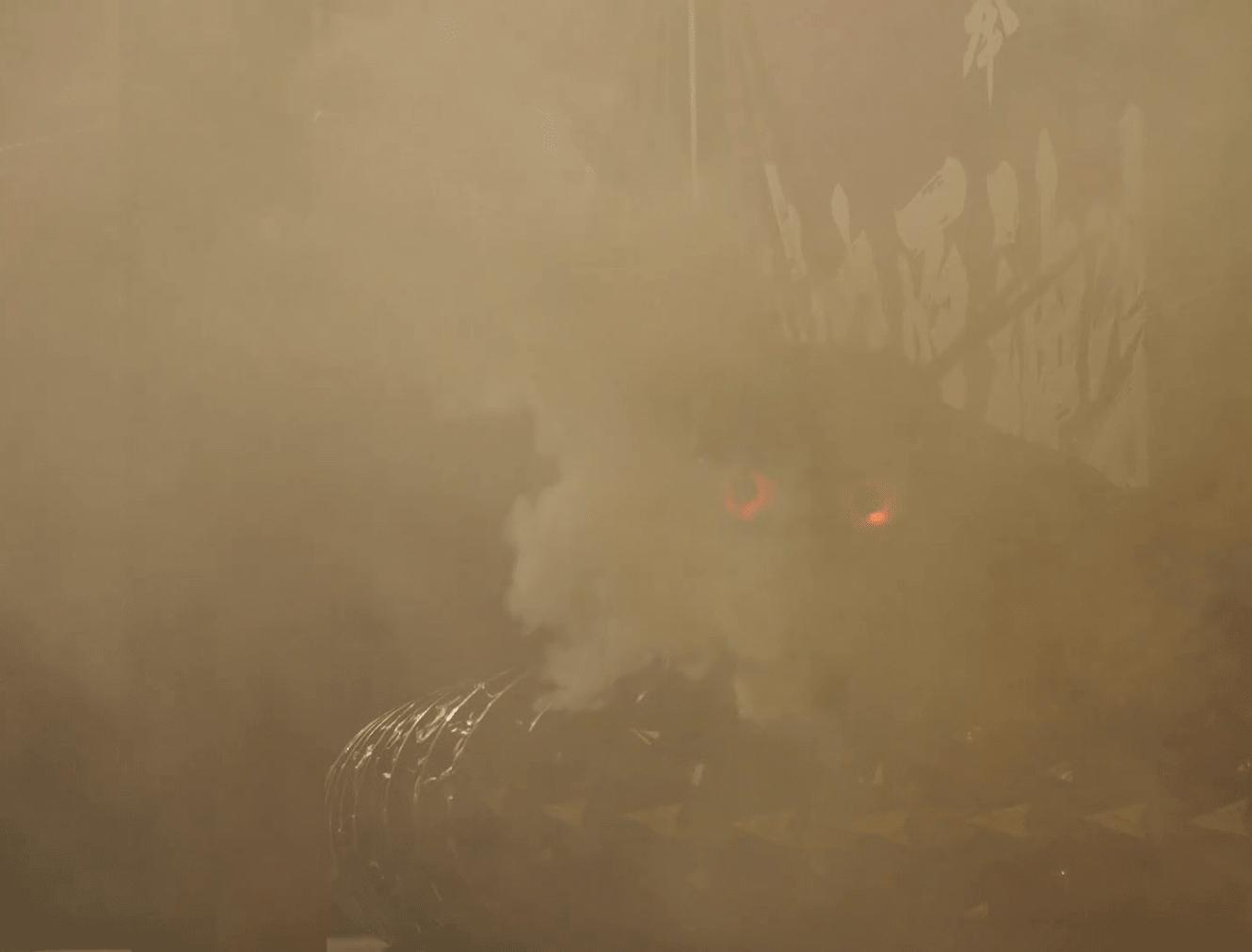 "The Defeat of the Serpent" is based on Japanese mythology, this piece reenacts Susanoo-no-Mikoto’s legendary battle against the giant serpent Yamata-no-Orochi. A single dancer masterfully manipulates a large serpent puppet, depicting its movements as it drinks sake, falls asleep in a drunken stupor, and thrashes about in an intense battle against Susanoo. The performance is highly dynamic, with the action filling the entire stage.