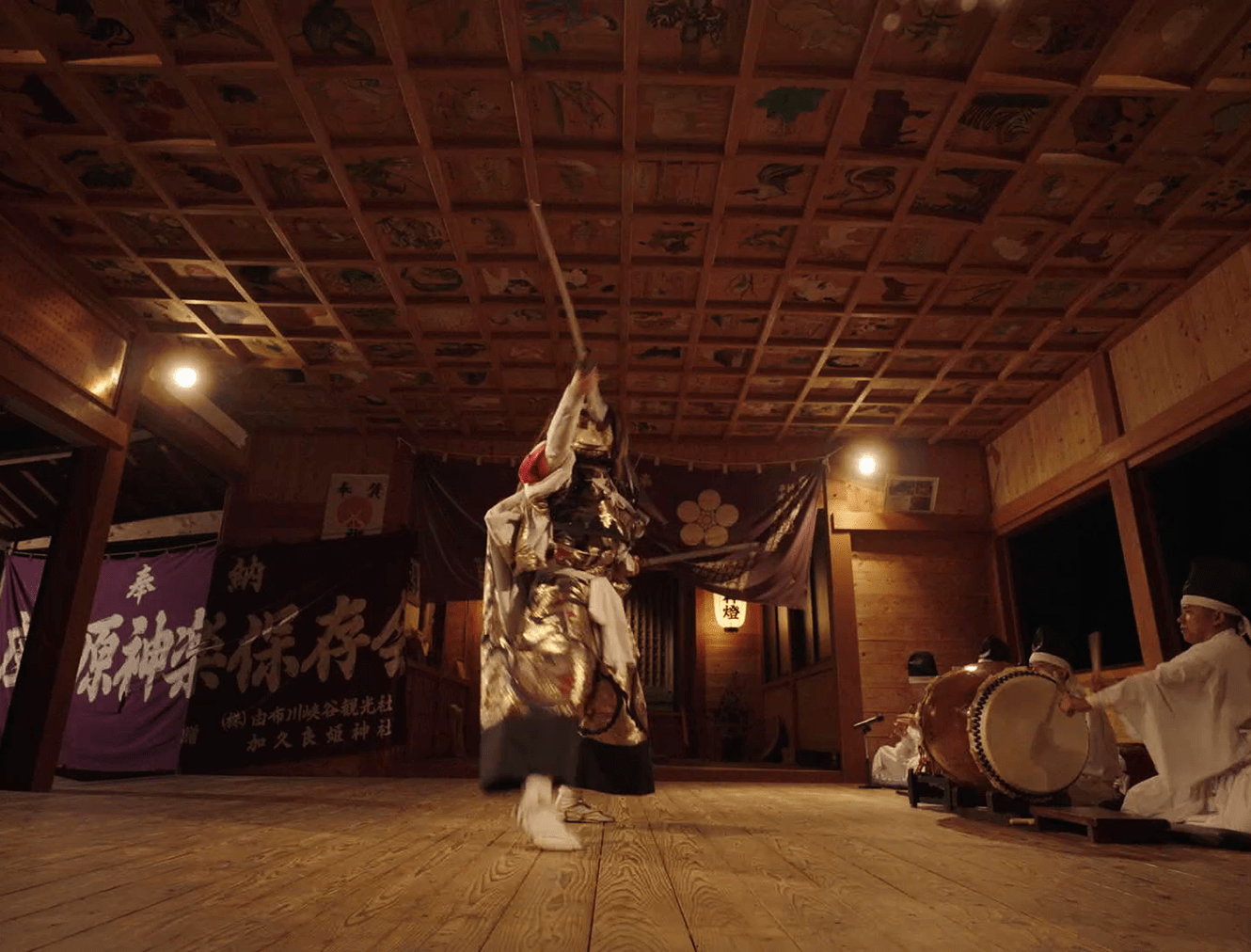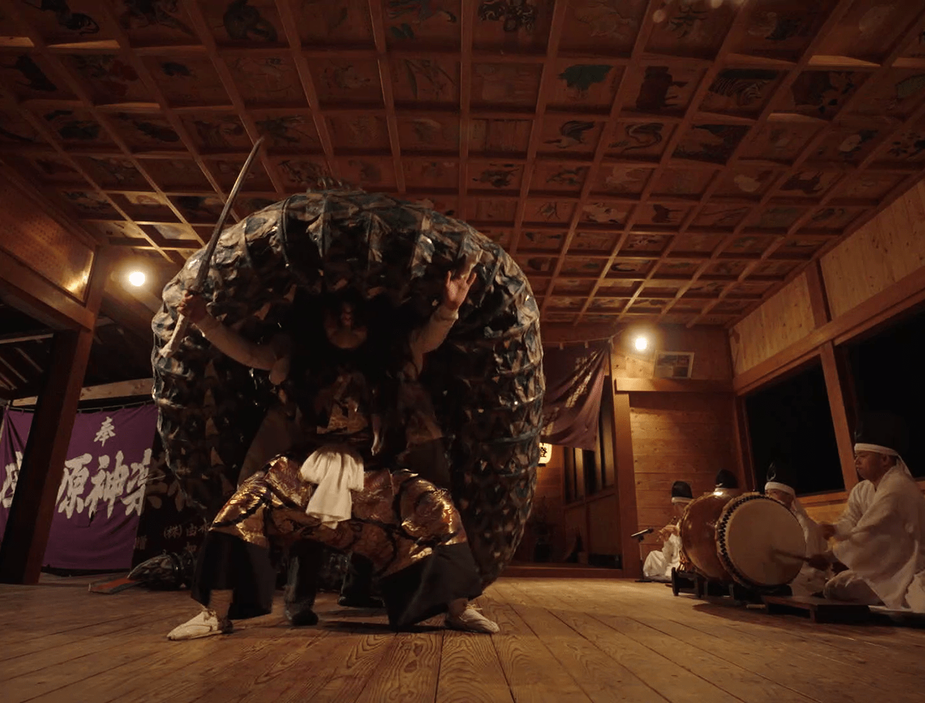 The recorded footage, produced with the cooperation of the Shonaibaru Kagura Preservation Society, showcases two iconic performances: "The Defeat of the Serpent" and "Dividing the Sun."
